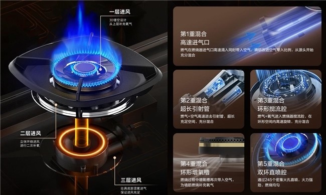 2. 五维立体混氧系统,提升燃烧效率